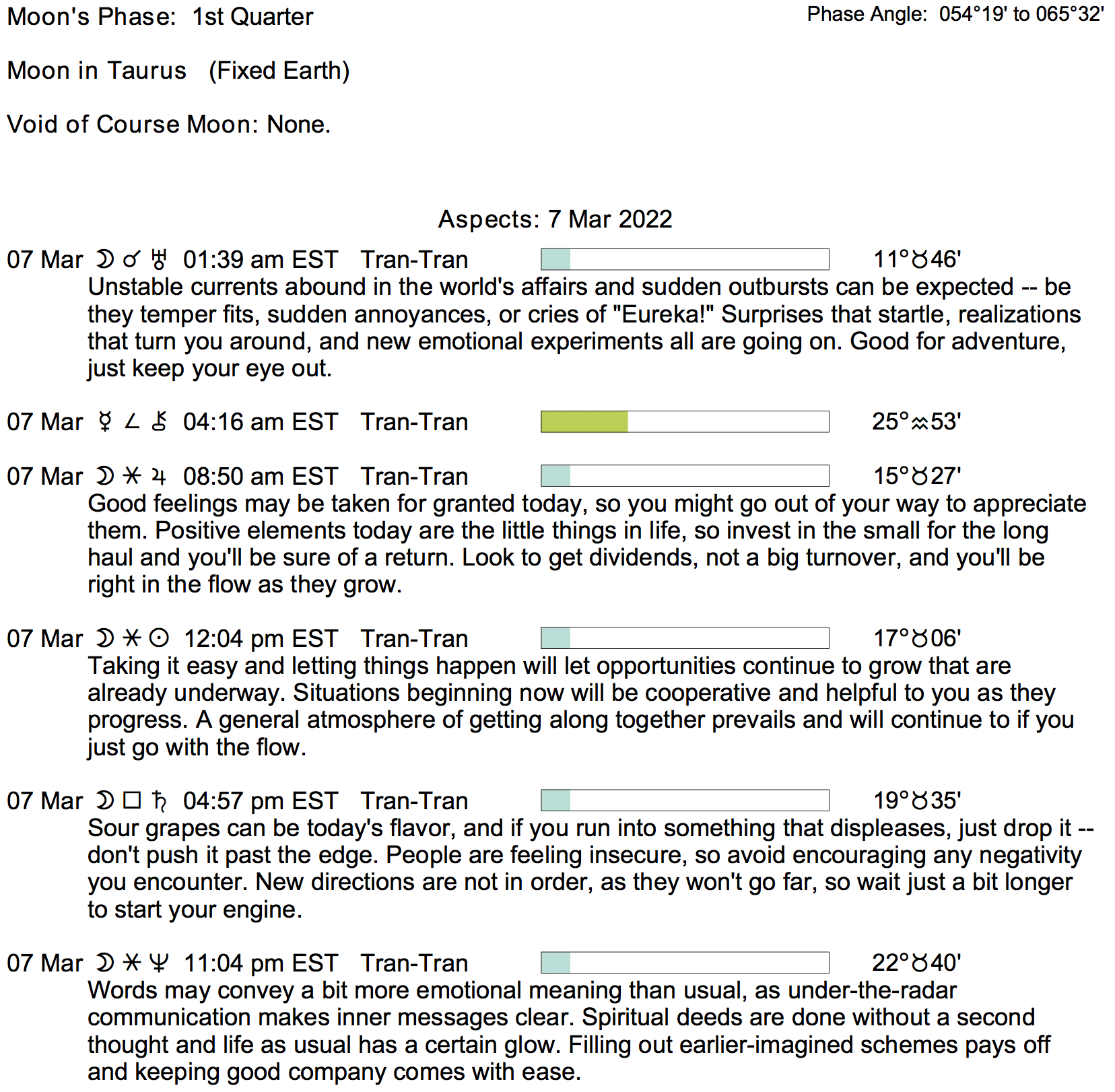 If you’re astrologically inclined and interested in the details of the Astrology of today, here are some of the factors considered in the forecasts: