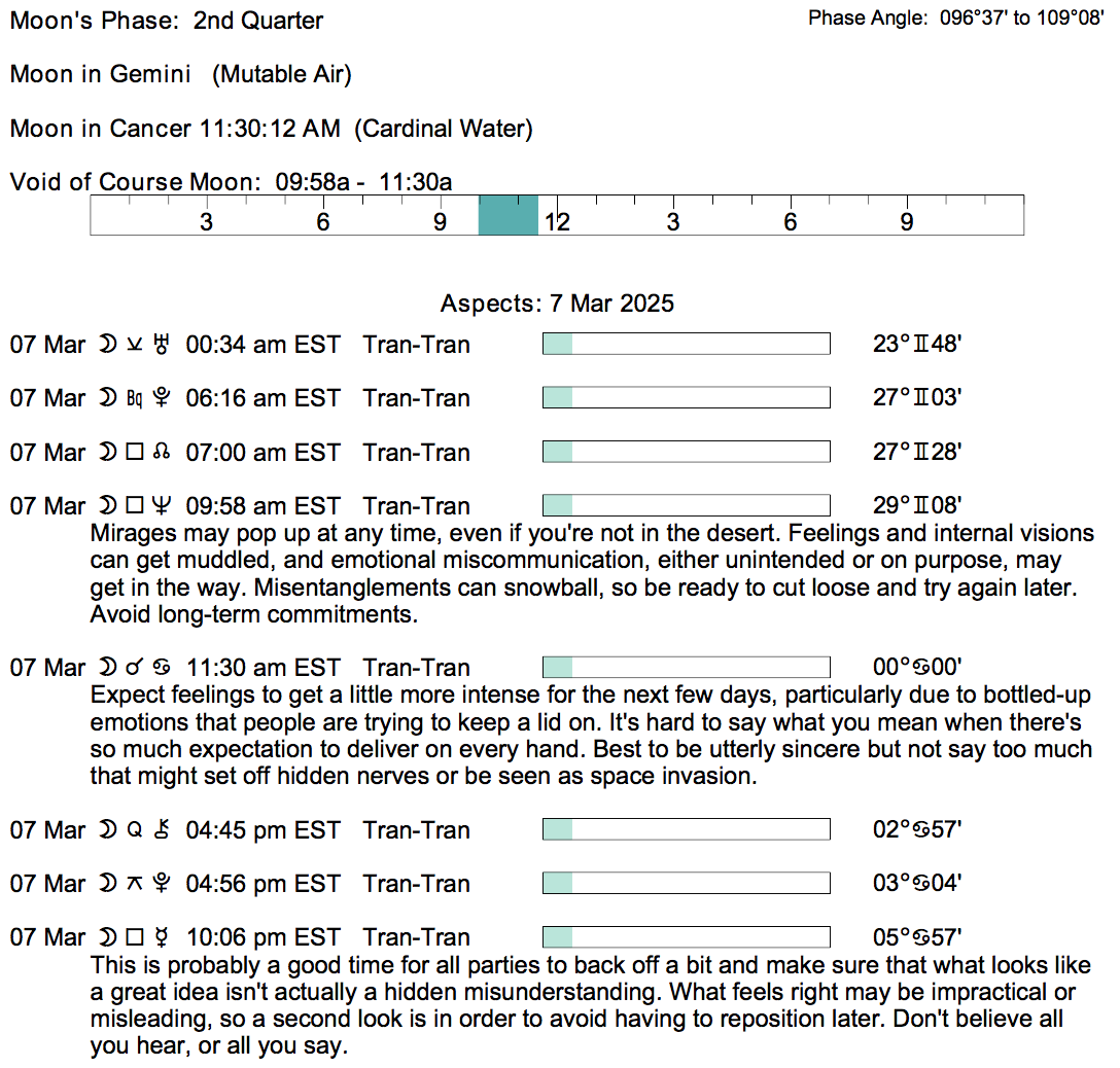 If you’re astrologically inclined and interested in the details of the Astrology of today, here are some of the factors considered in the forecasts: