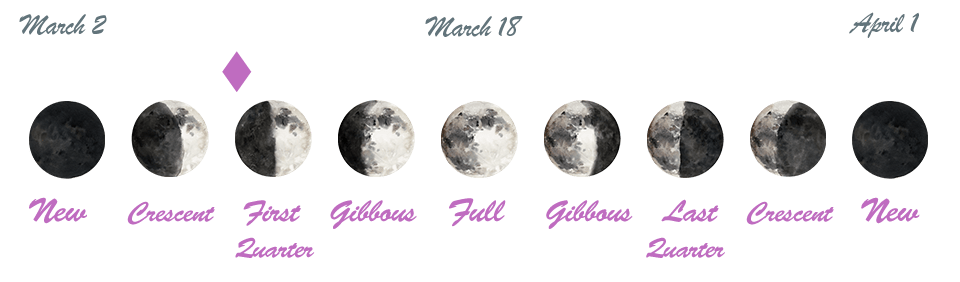 - The New Moon occurred on the 2nd in Pisces, and the First Quarter Moon will happen tomorrow.