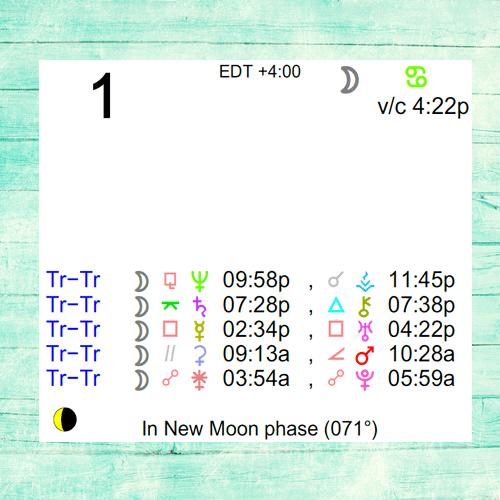 - The Moon is void from 4:22 PM forward (until tomorrow at 12:11 AM).
