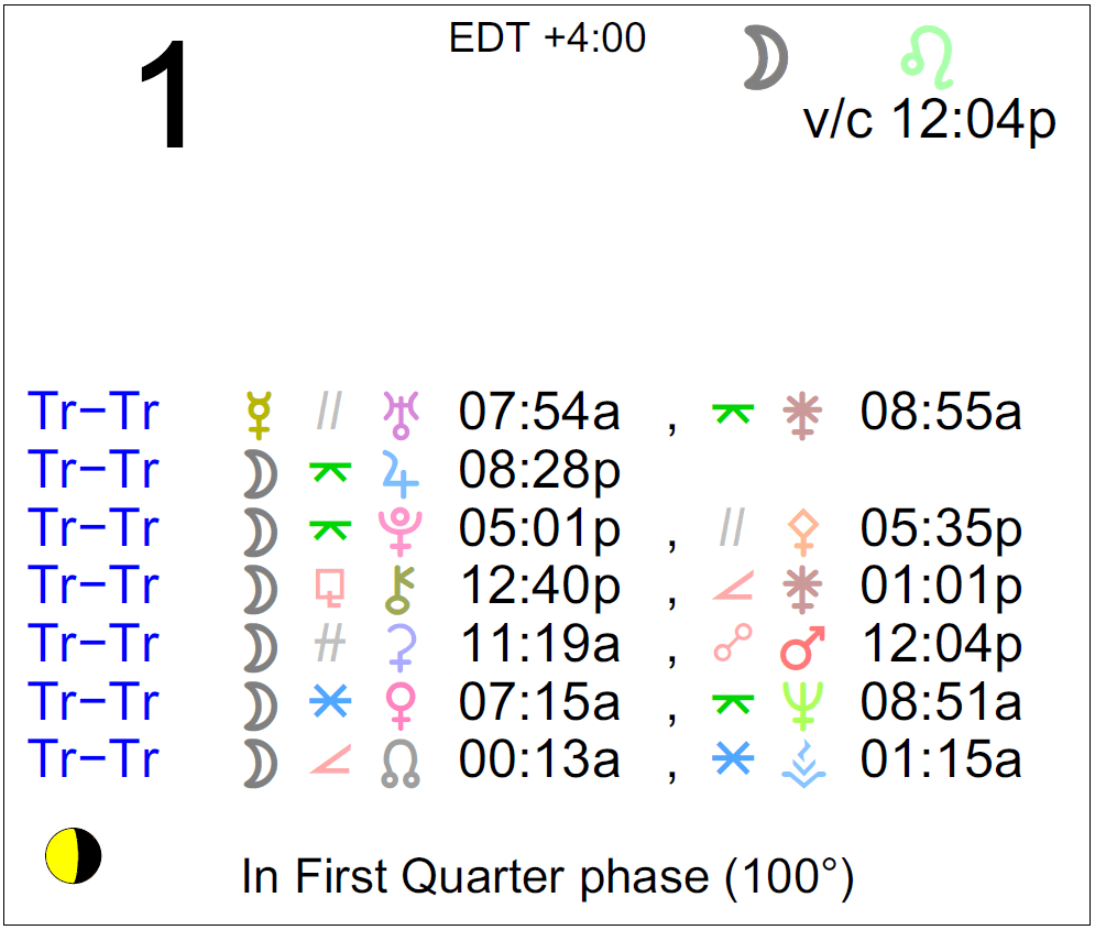 - The void Moon occurs from 12:04 PM forward (until tomorrow when the Moon enters Virgo at 1:35 AM).