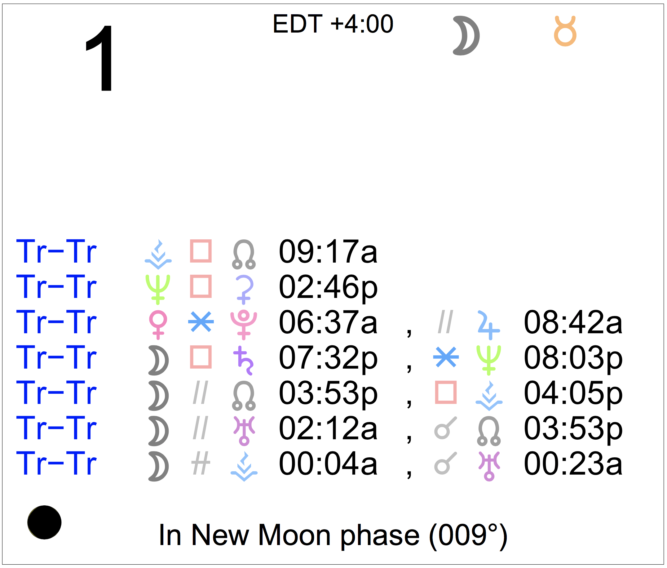 - The New Moon (partial Solar Eclipse) occurred yesterday in the sign of Taurus.