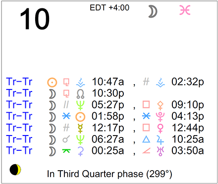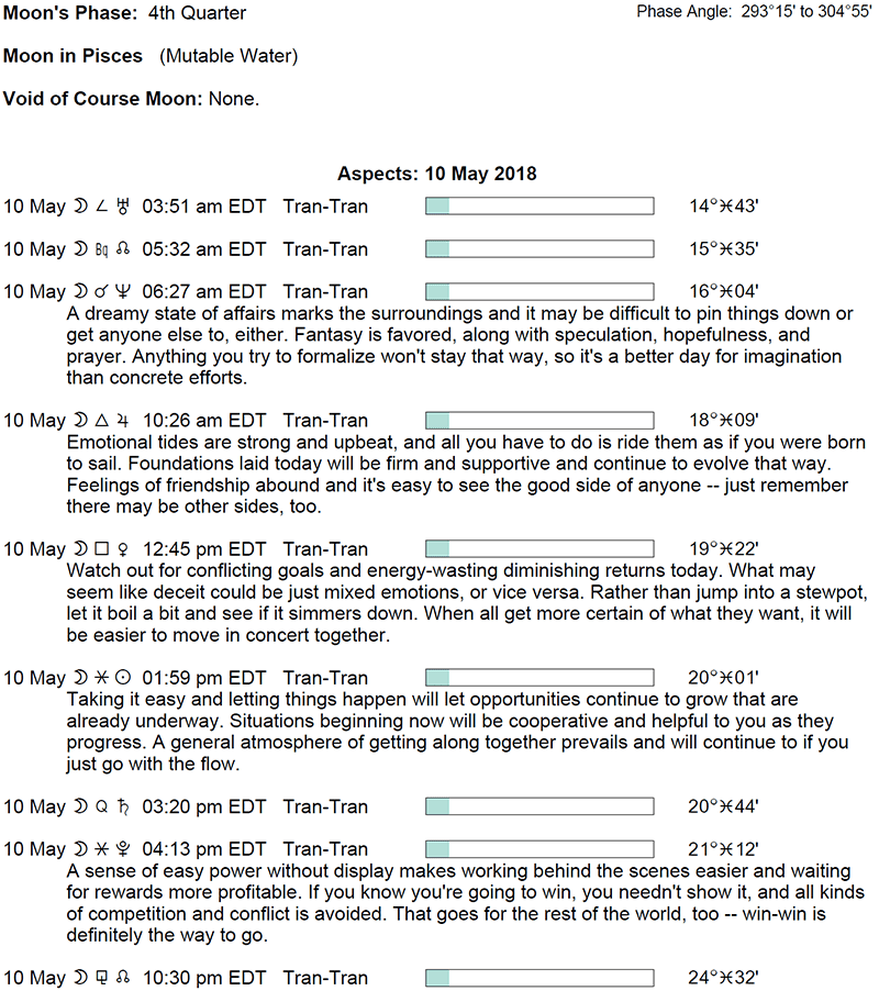 **Conjunctions to Select Fixed Stars on May 10, 2018.**