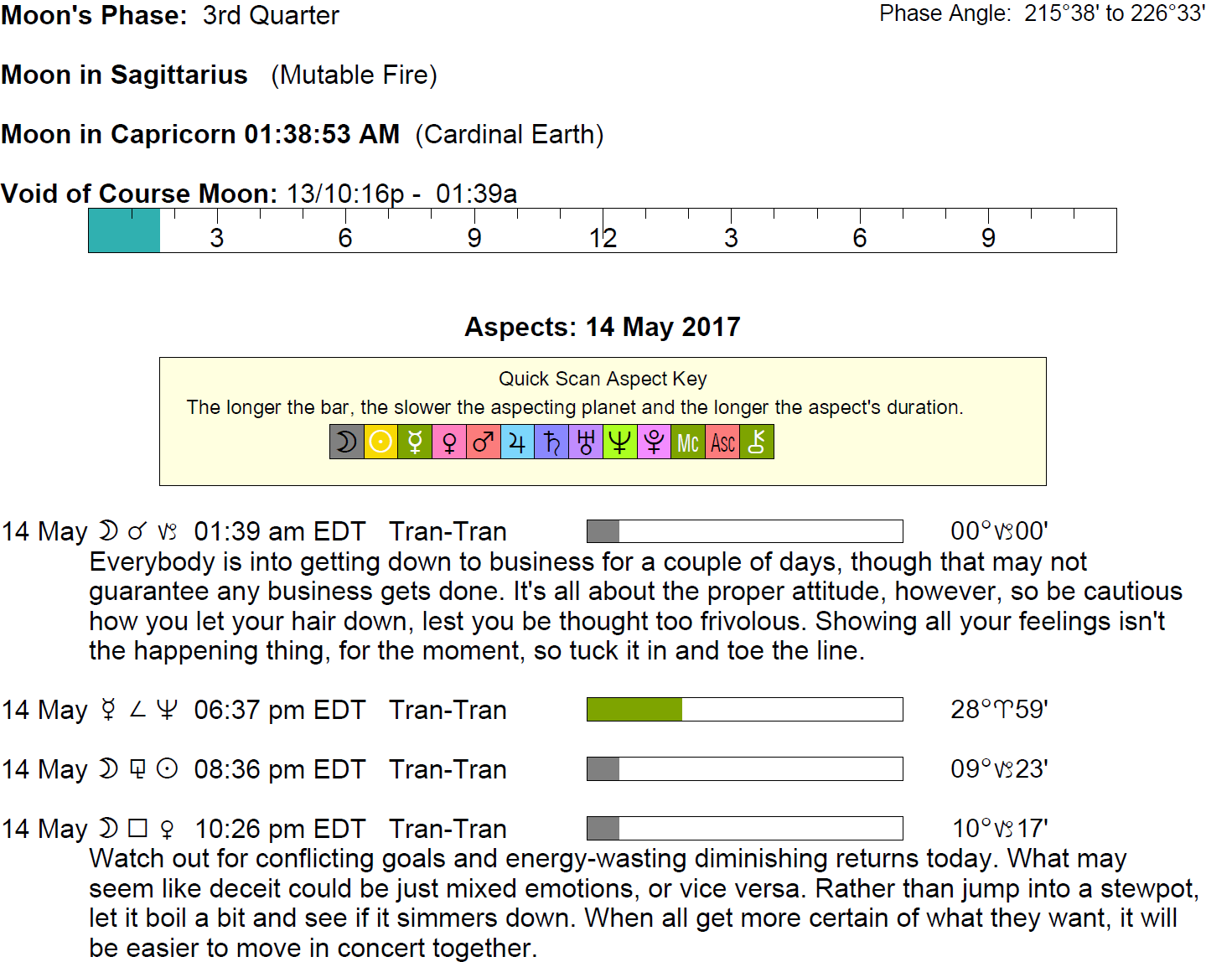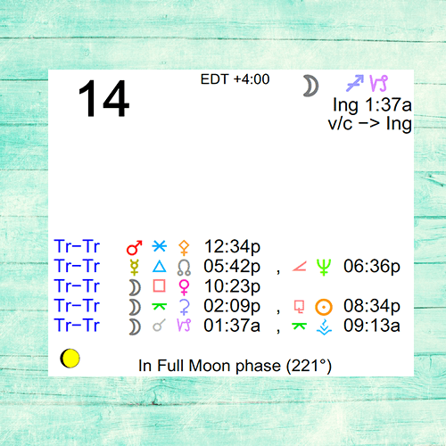 The following aspects (major only) and positions are at noon (EDT) on May 14th: