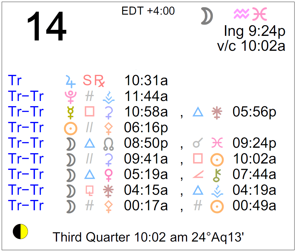 - The Last Quarter Moon occurs today at 10:02 AM.