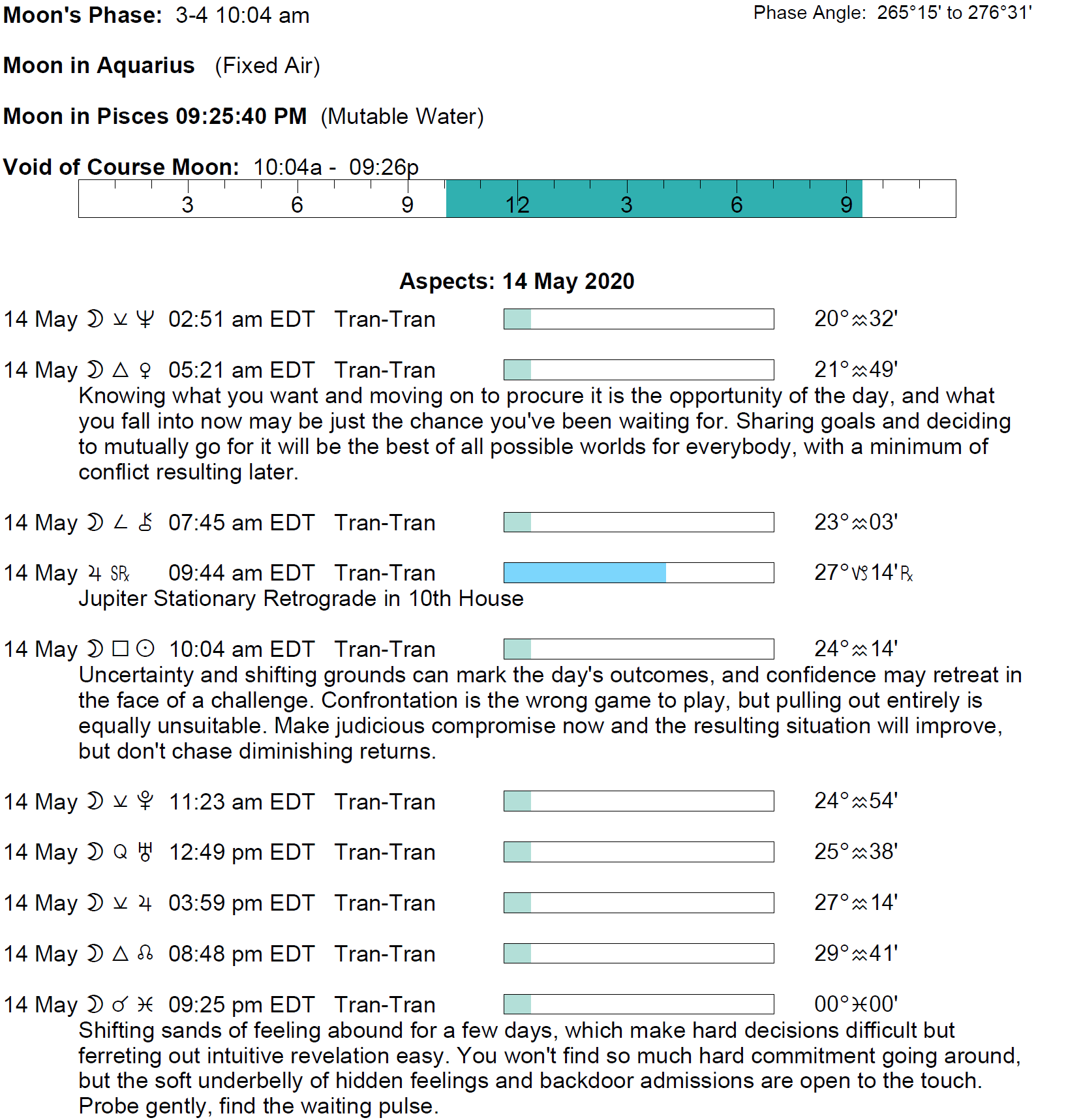 - Jupiter stations and turns retrograde today (Jupiter is retrograde from May 14th to September 12th).