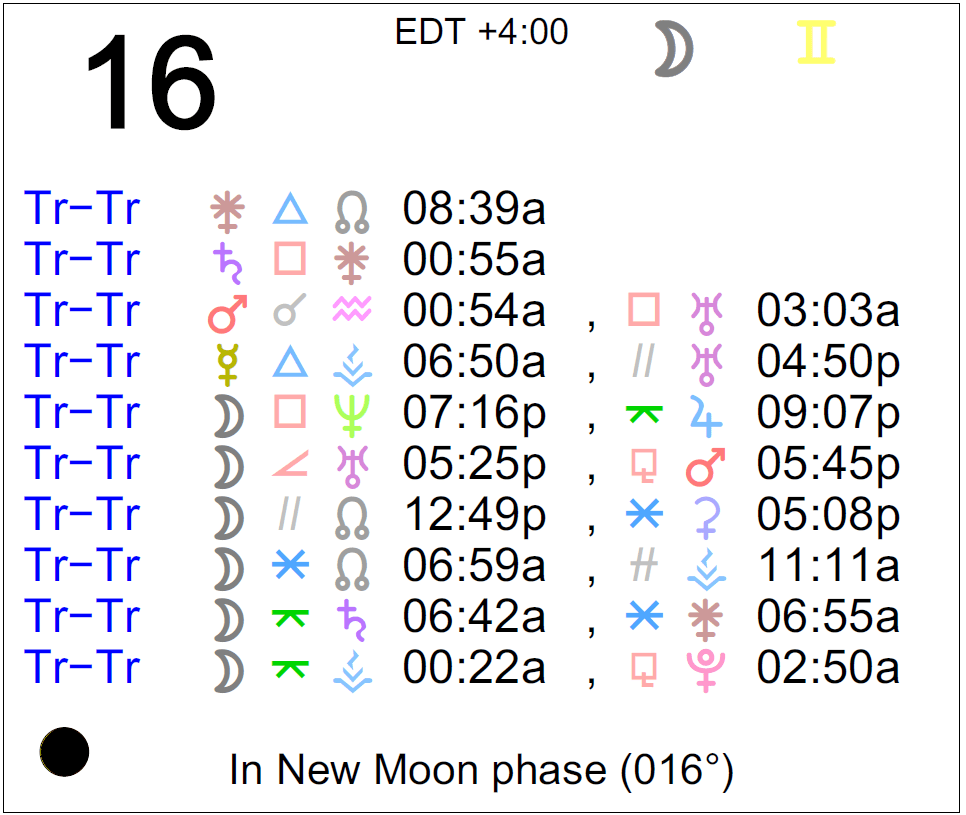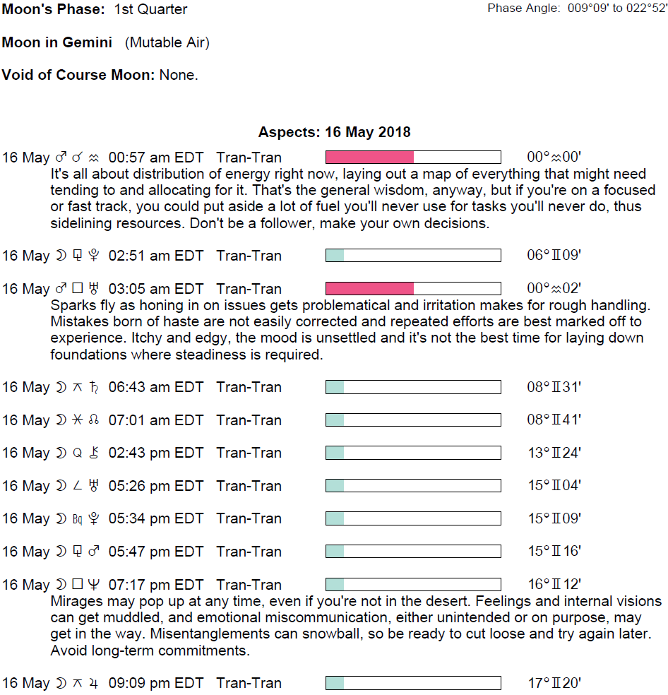 **Conjunctions to Select Fixed Stars on May 16, 2018.**