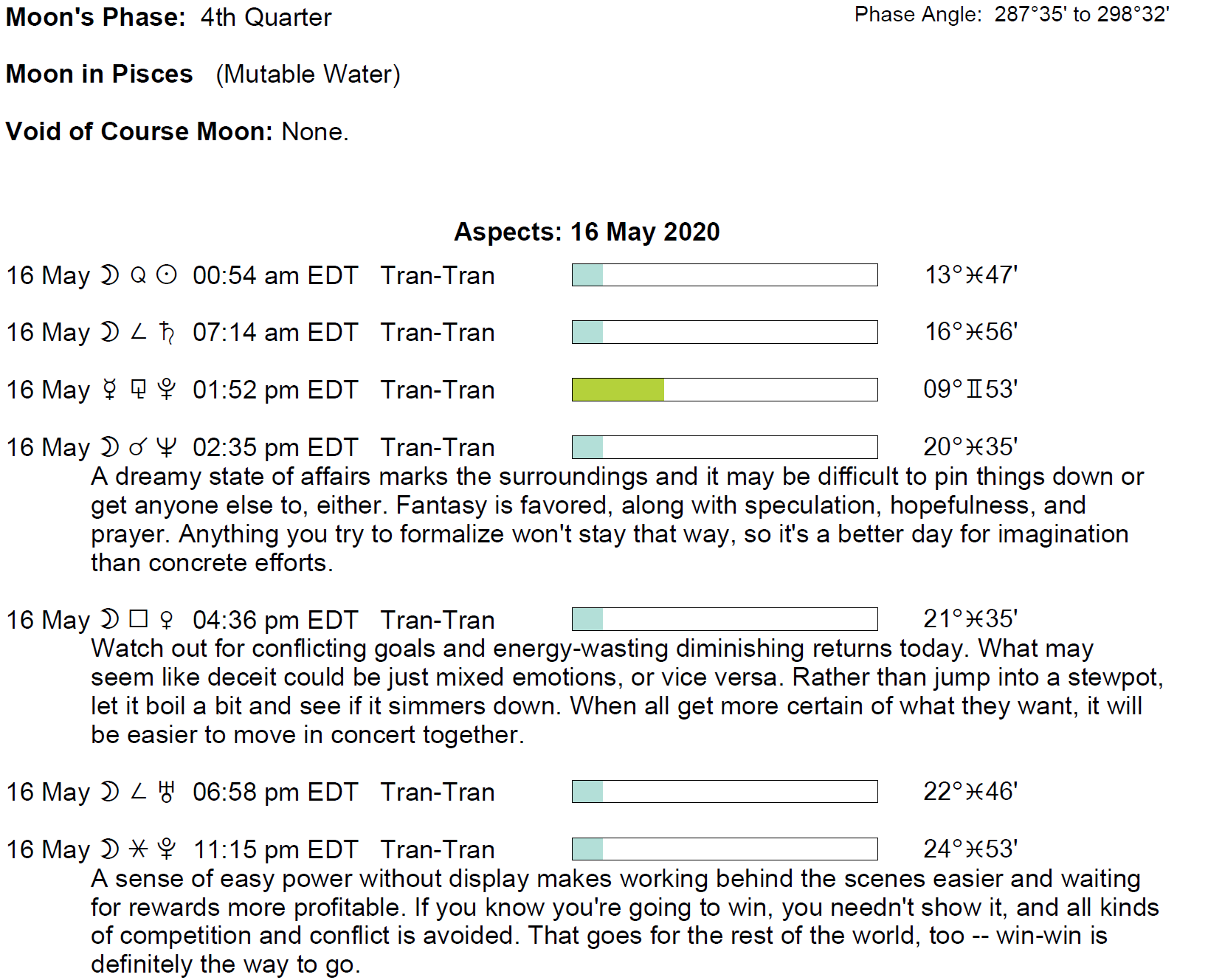 If you’re astrologically inclined and interested in the details of the Astrology of today, here are some of the factors considered in the forecasts: