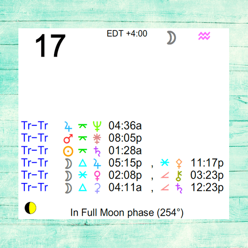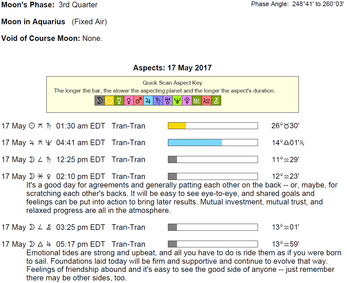The following aspects (major only) and positions are at noon (EDT) on May 17th: