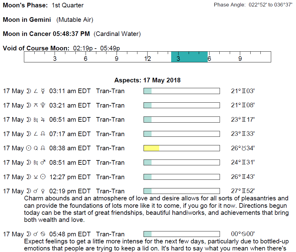 **Conjunctions to Select Fixed Stars on May 17, 2018.**