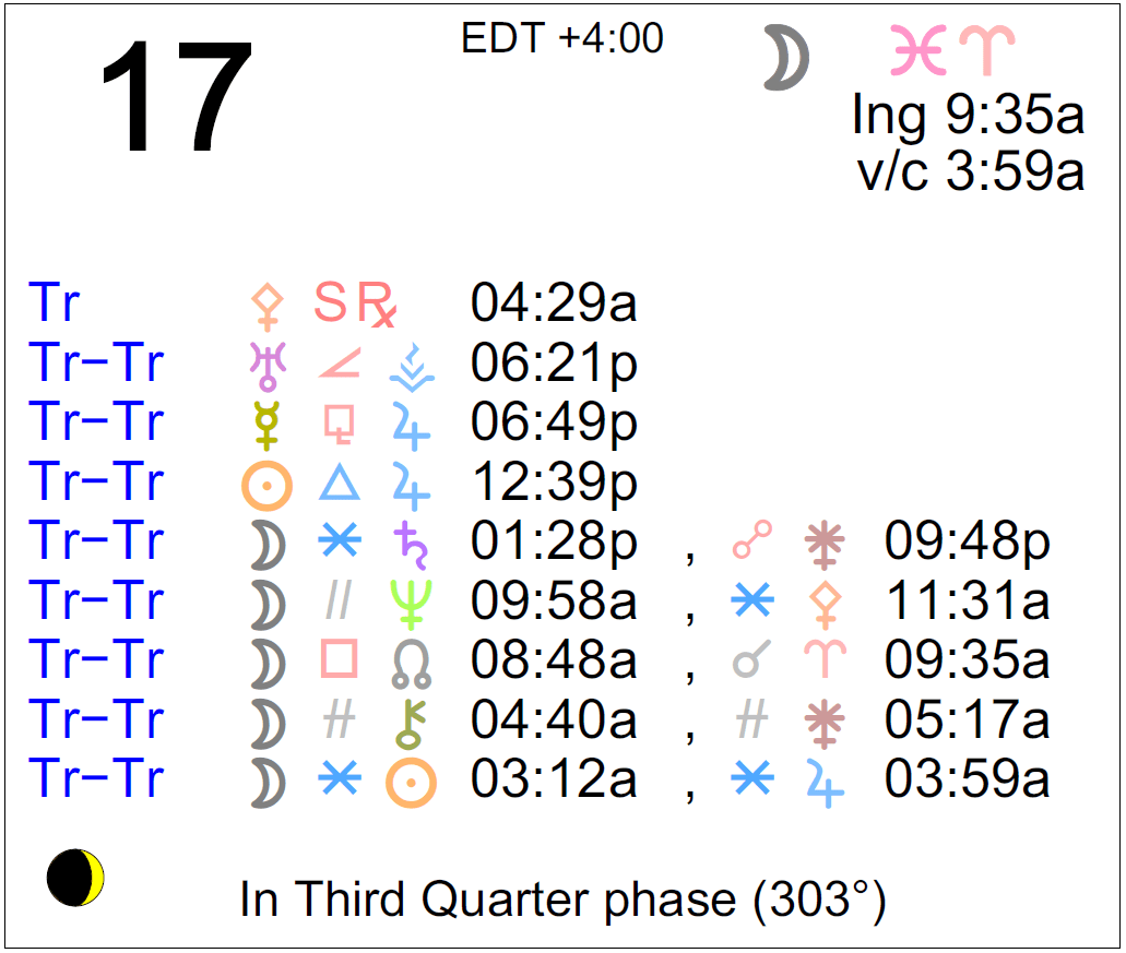 - The Moon is in Pisces until 9:35 AM, after which the Moon is in Aries.