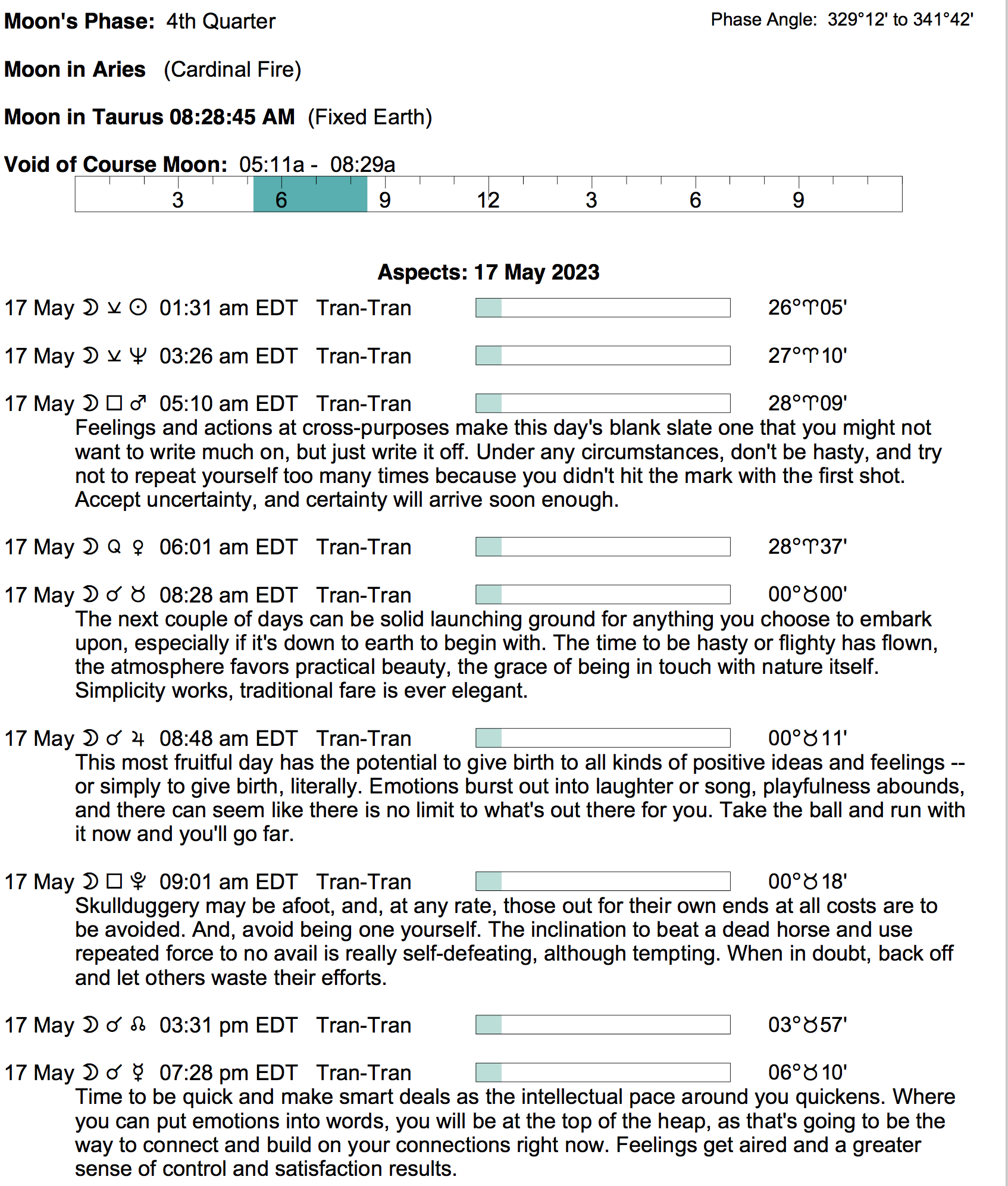 - A void Moon period occurs from 5:09 AM to 8:27 AM today.