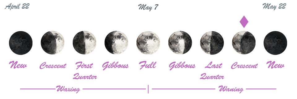 - We are in between the Last Quarter Moon that occurred on the 14th and the New Moon, which will occur on May 22nd.