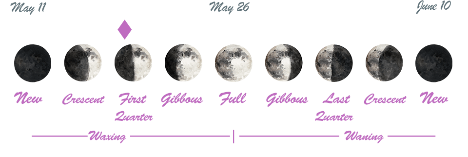 - The New Moon occurred in the sign of Taurus on the 11th, and the First Quarter Moon will occur tomorrow.