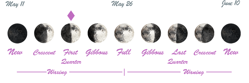 - The Moon is waxing and in its Waxing Crescent phase until 3:12 PM, after which the Moon is in its First Quarter phase.
