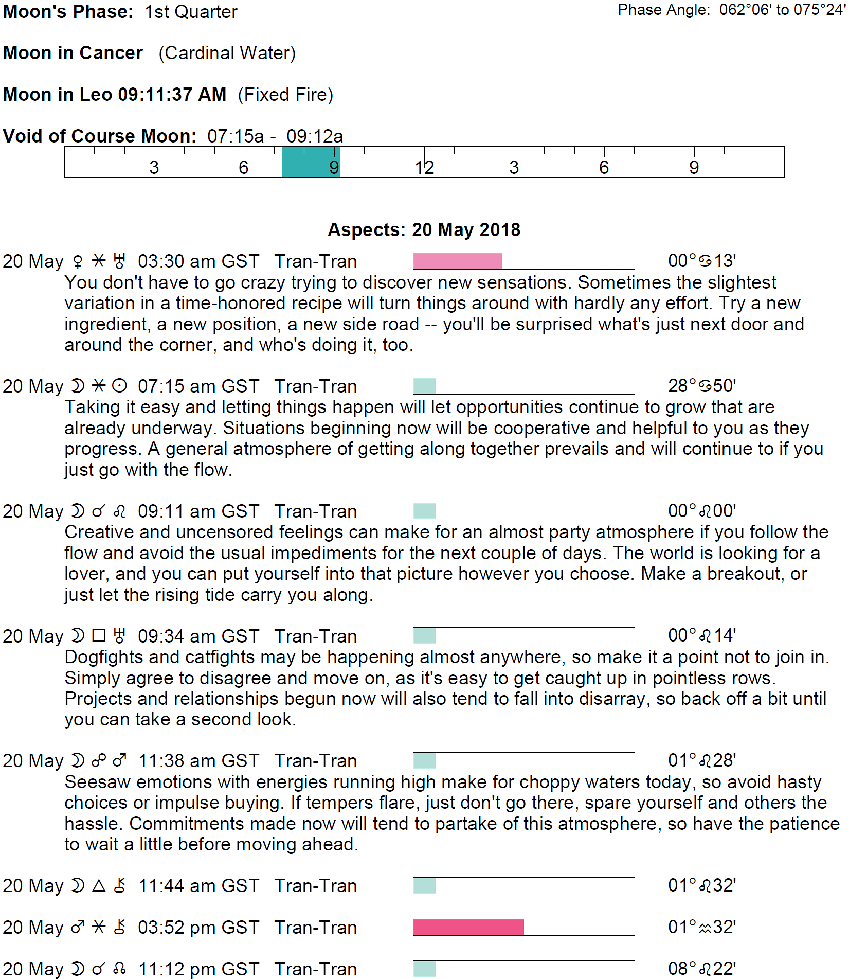 **Conjunctions to Select Fixed Stars on May 20, 2018.**