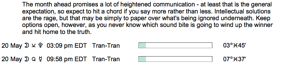 If you’re astrologically inclined and interested in the details of the Astrology of today, here are some of the factors considered in the forecasts: