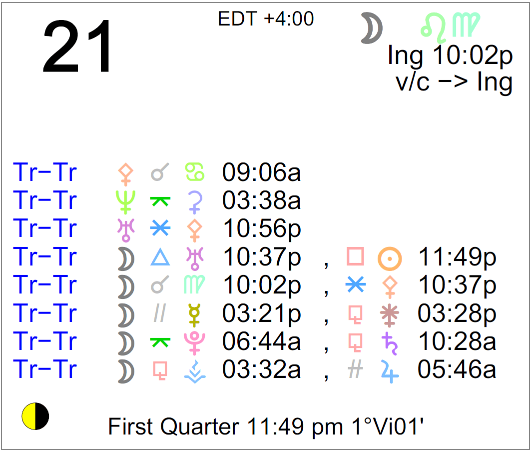 - The Moon is void until 10:02 PM (since last night at 11:29 PM).
