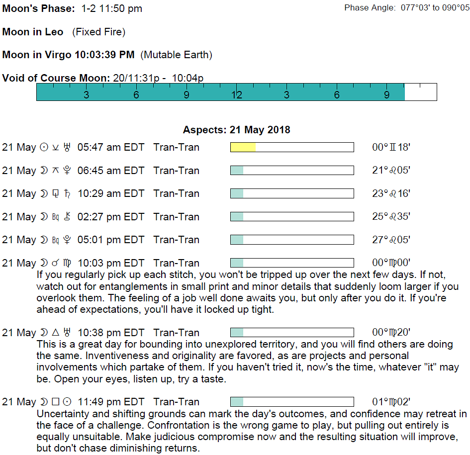 **Conjunctions to Select Fixed Stars on May 21, 2018.**