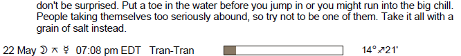 If you’re astrologically inclined and interested in the details of the Astrology of today, here are some of the factors considered in the forecasts (for the astrology of the week, see This Week in Astrology):