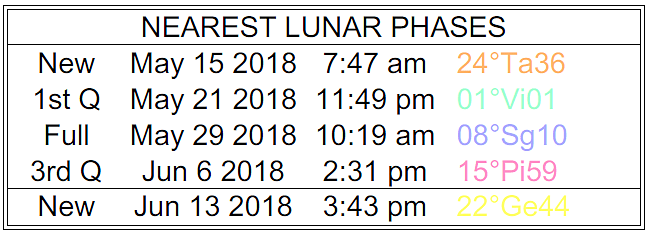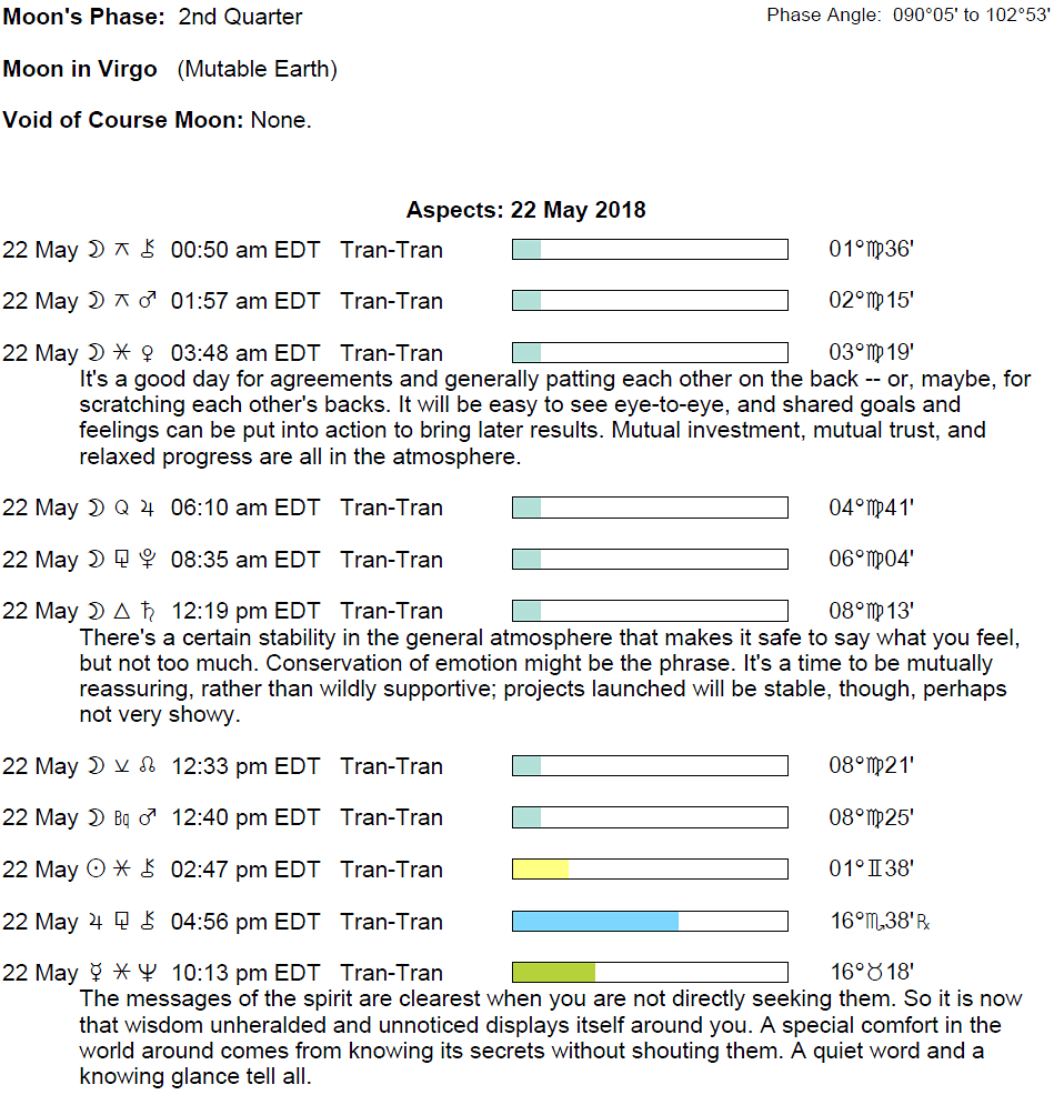 **Conjunctions to Select Fixed Stars on May 22, 2018.**