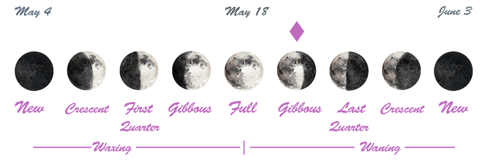- We’re between the Full Moon that occurred on the 18th in the sign of Scorpio and the Last Quarter Moon that will happen on May 26th.