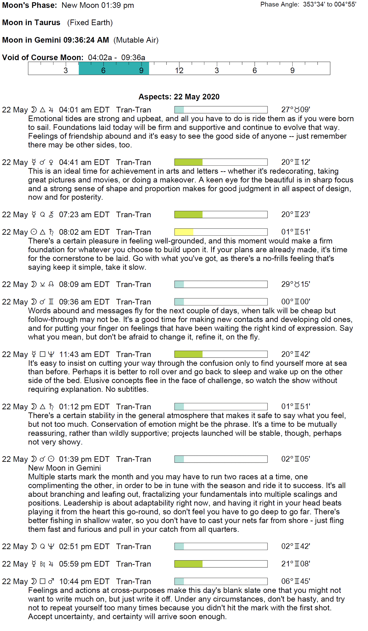 - The New Moon occurs today in the sign of Gemini at 1:38 PM.