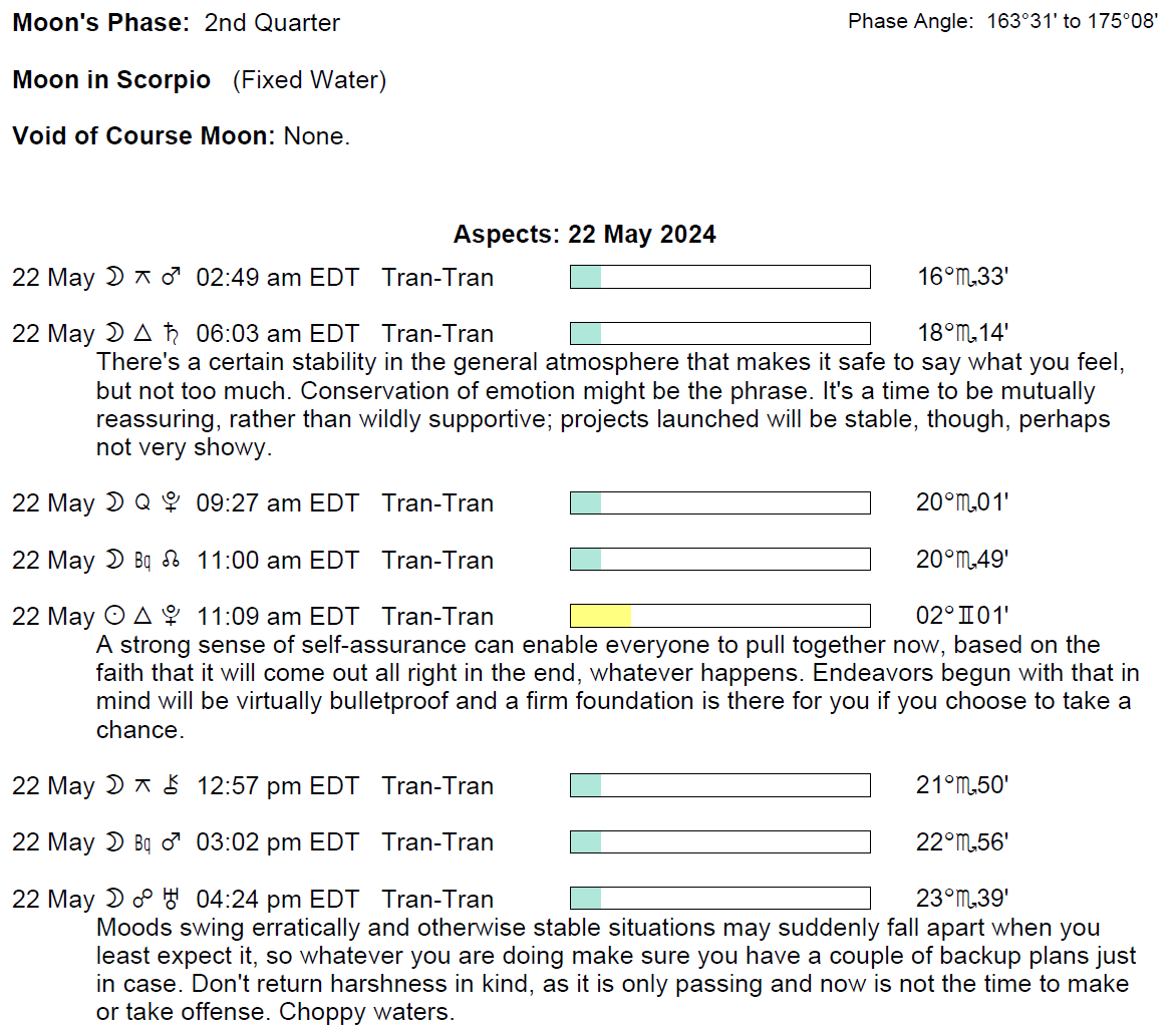 If you’re astrologically inclined and interested in the details of the Astrology of today, here are some of the factors considered in the forecasts: