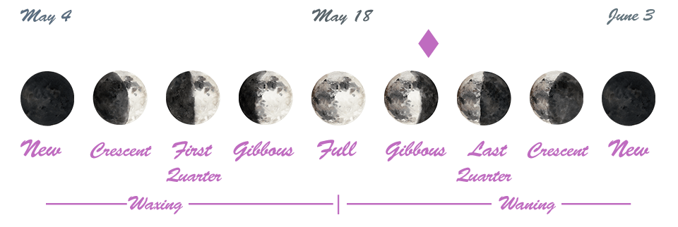 - We’re between the Full Moon that occurred on the 18th in the sign of Scorpio and the Last Quarter Moon that will happen on May 26th.
