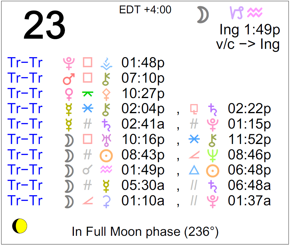 - The void Moon occurs until 1:49 PM (since yesterday at 11:57 PM).