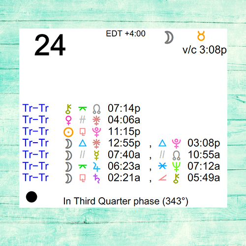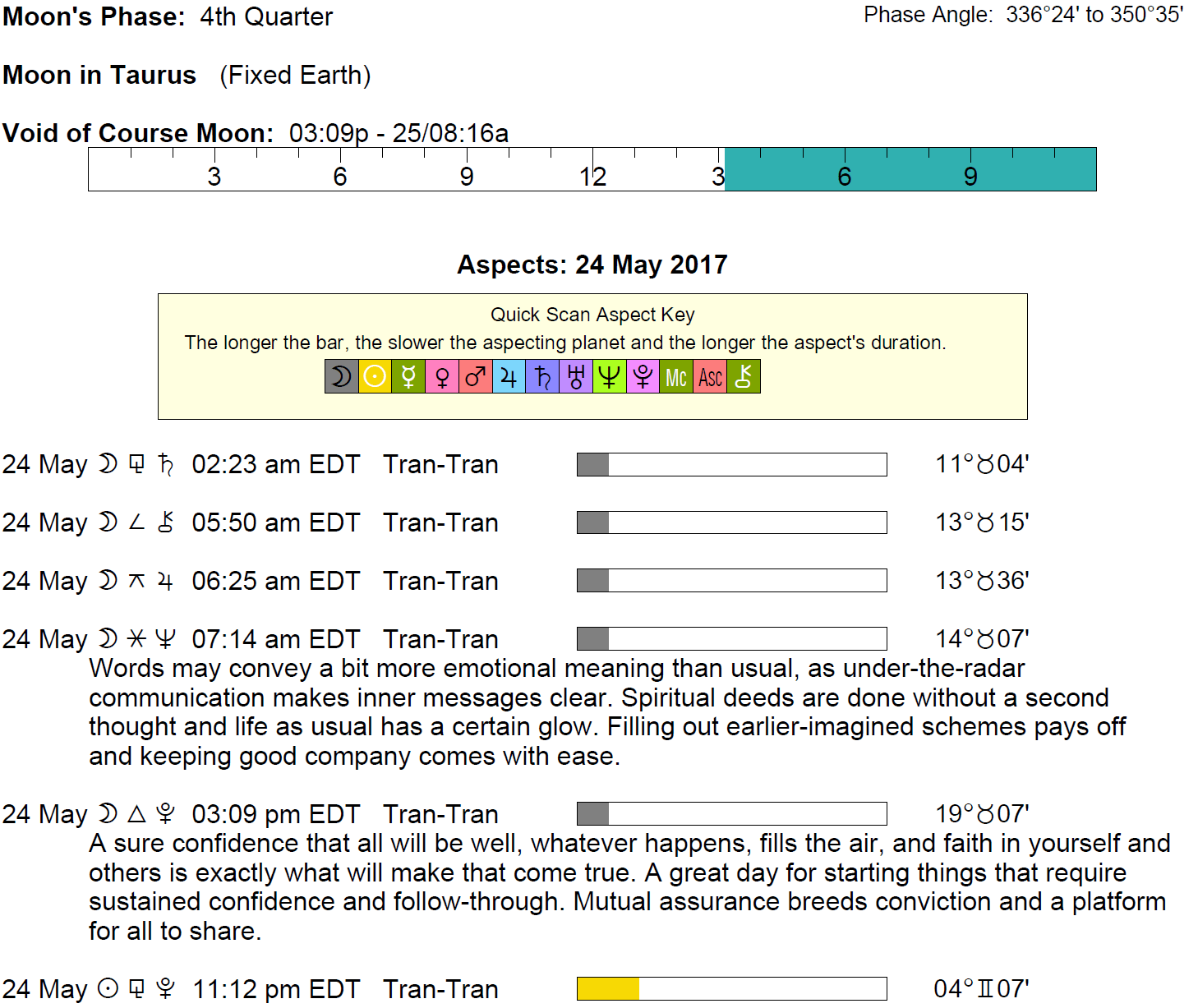 The following aspects (major only) and positions are at noon (EDT) on May 24th: