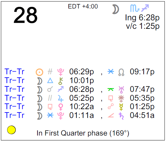 - The Moon is void from 1:25 PM to 6:28 PM.