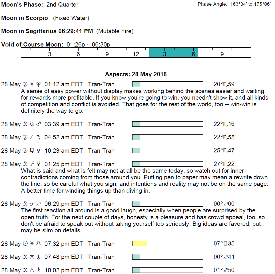 **Conjunctions to Select Fixed Stars on May 28, 2018.**