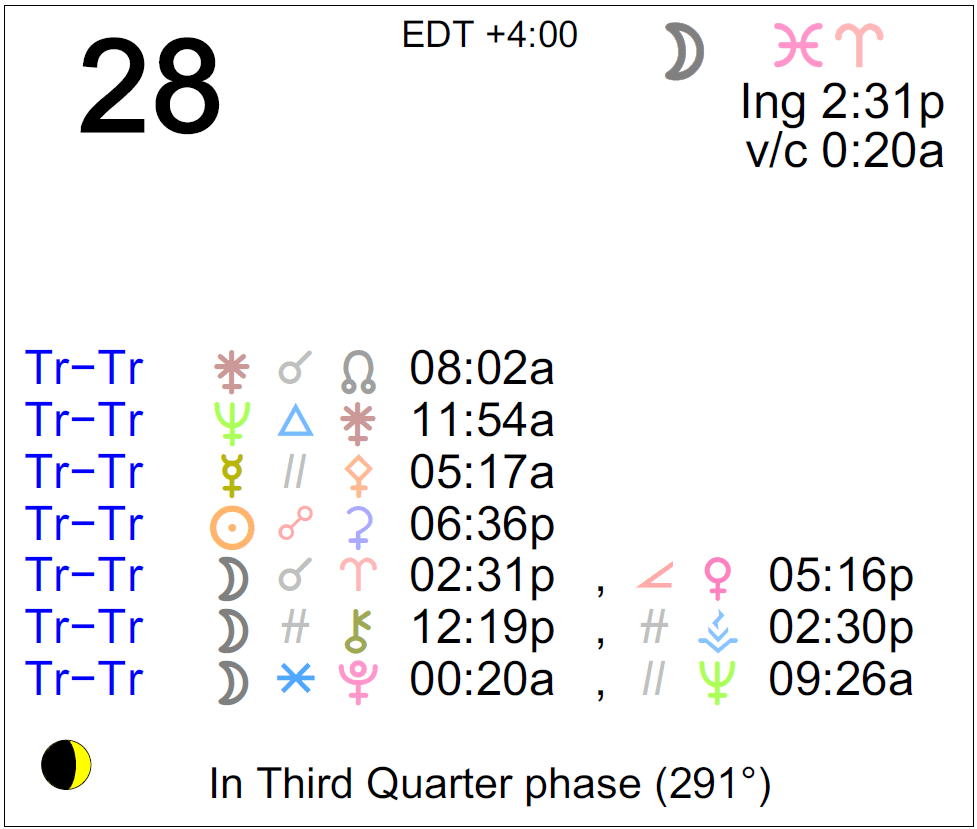 If you’re astrologically inclined and interested in the details of the Astrology of today, here are some of the factors considered in the forecasts: