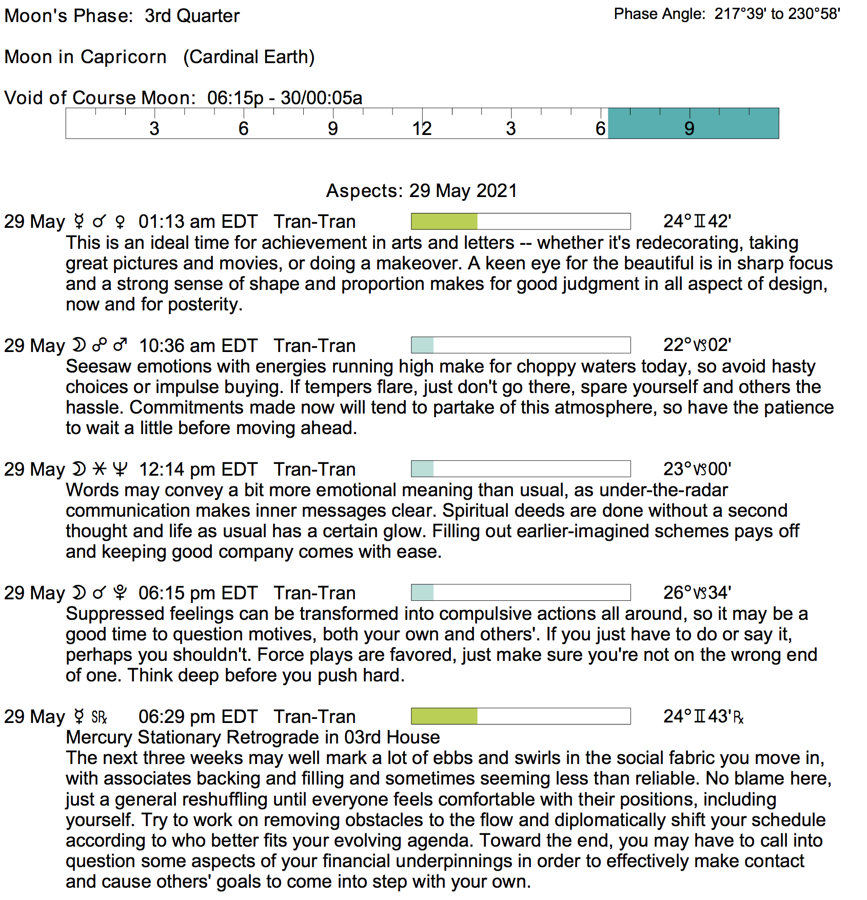 If you’re astrologically inclined and interested in the details of the Astrology of today, here are some of the factors considered in the forecasts: