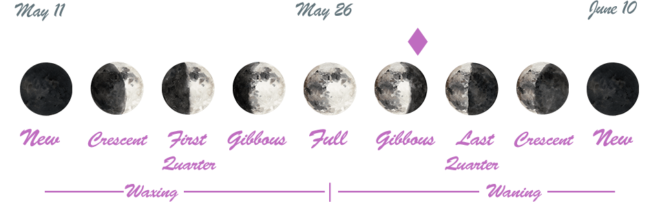 - We’re in between a Full Moon/Lunar Eclipse that occurred on the 26th and a Last Quarter Moon that will happen on June 2nd.