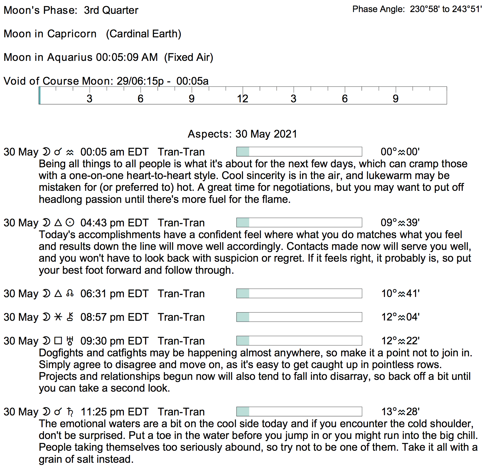 - The Moon continues in Capricorn only until 12:04 AM, after which the Moon transits Aquarius.