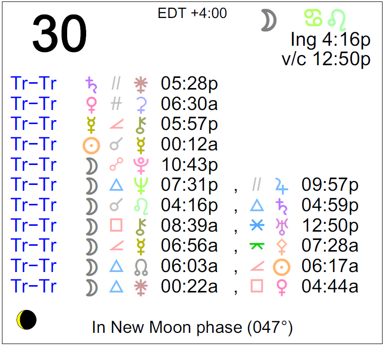 - A void Moon period occurs from 12:50 PM to 4:16 PM today.