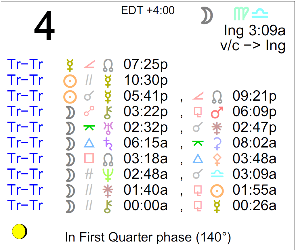 - The void Moon continues until 3:09 AM (since yesterday at 10:24 PM).
