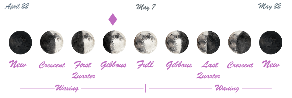 The purple marker above shows where we are in the current moon phase cycle.