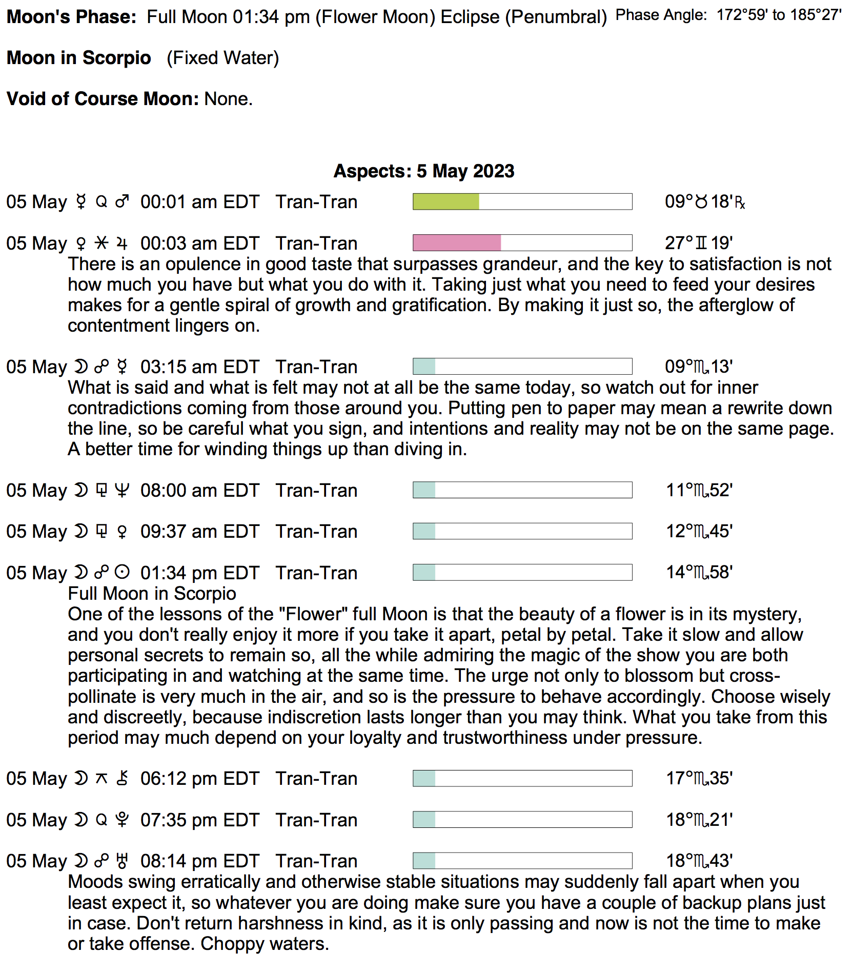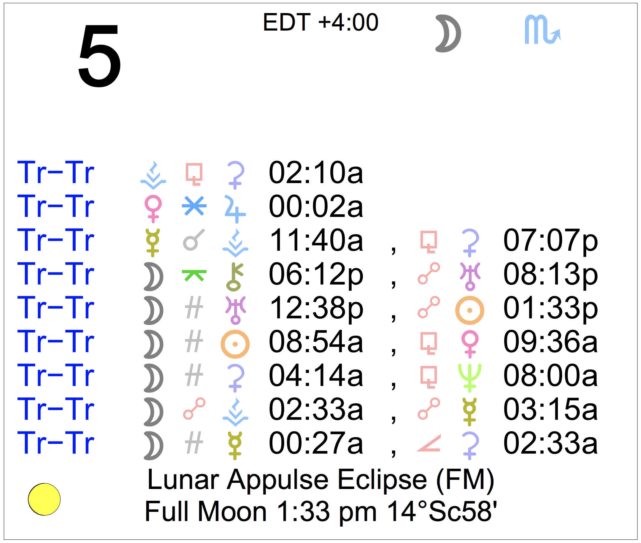 - The Full Moon Lunar Eclipse occurs today at 1:33 PM in Scorpio.