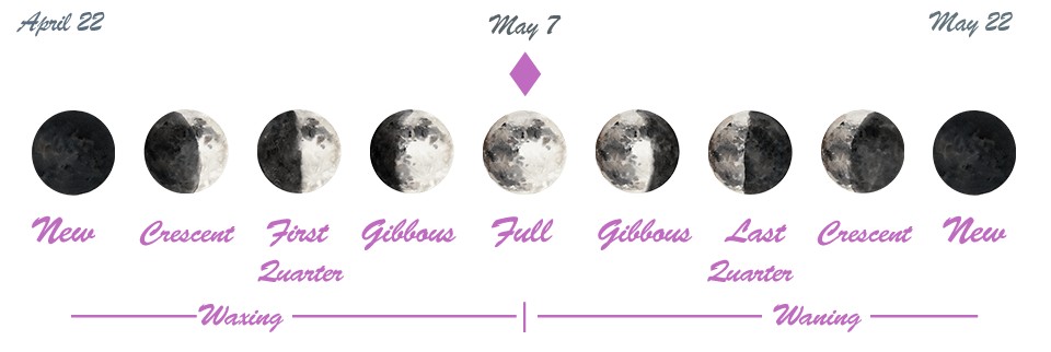 The purple marker above shows where we are in the current moon phase cycle.
