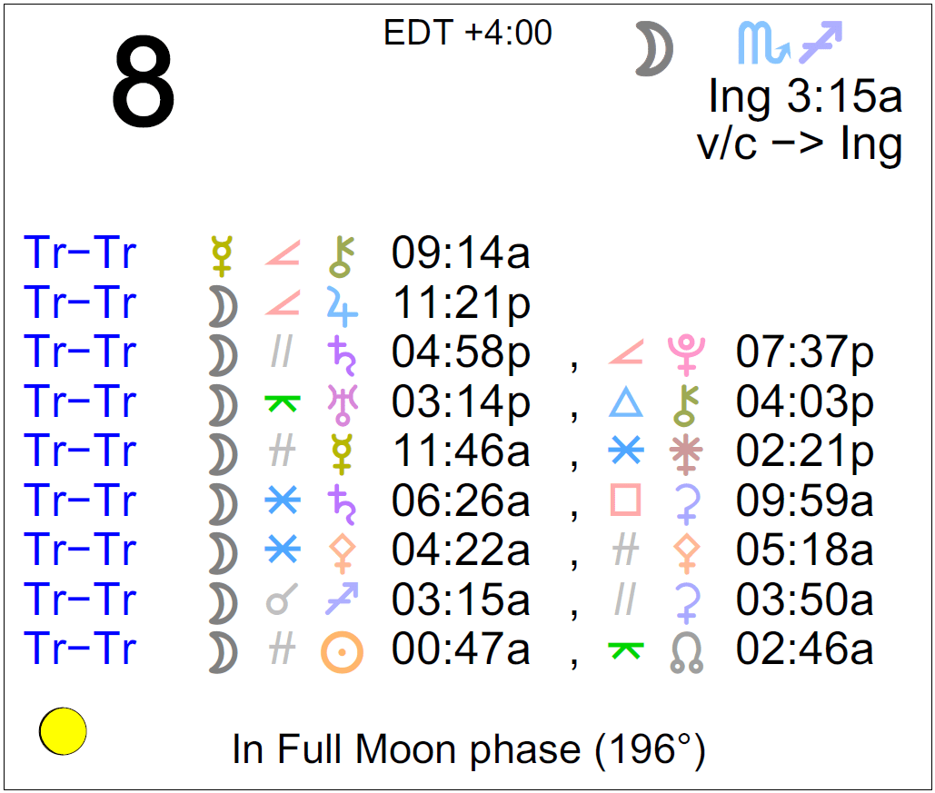 - The Moon is in Scorpio until 3:15 AM, after which the Moon is in Sagittarius.