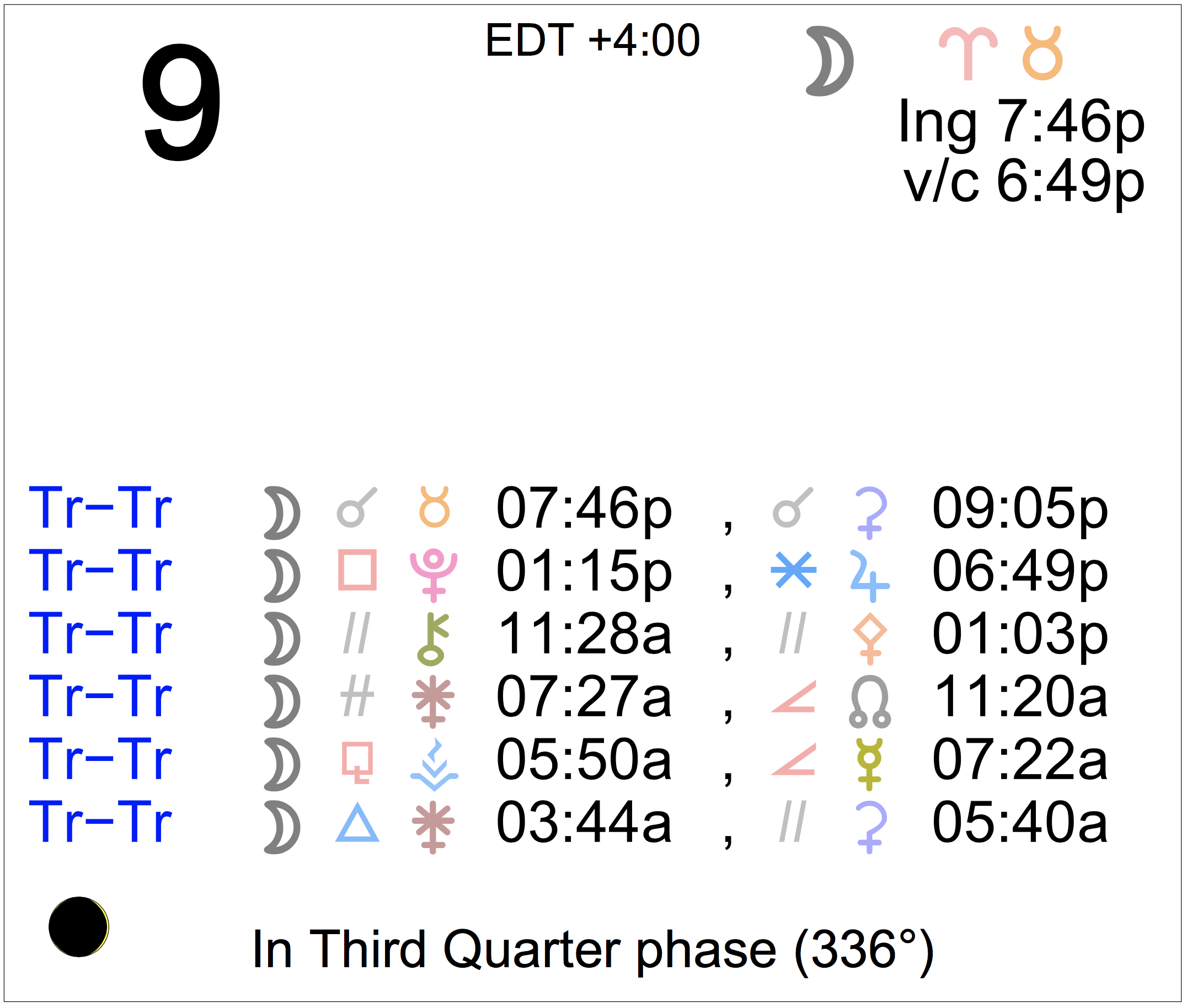 - A void Moon occurs from 6:49 PM to 7:46 PM.