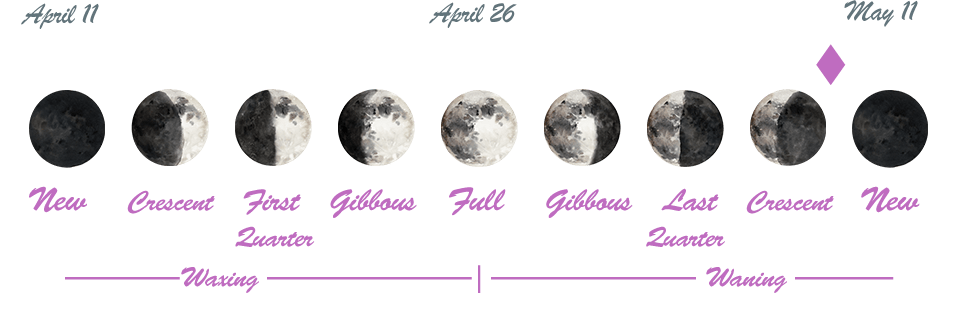 - The Last Quarter Moon occurred on the 3rd, and the New Moon will occur on May 11th.