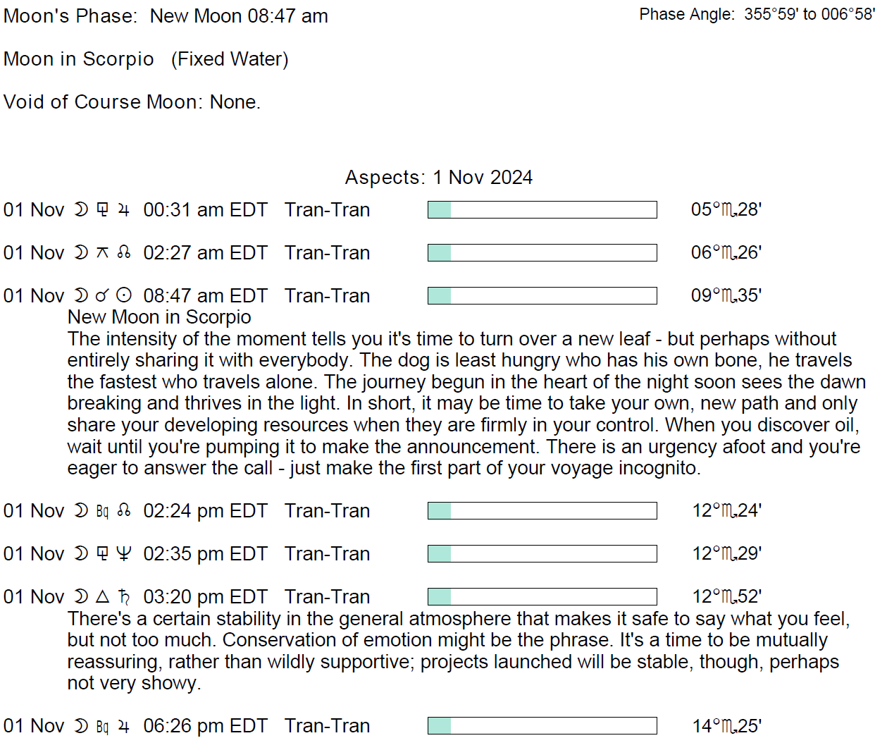 - The New Moon occurs today at 8:46 AM in the sign of Scorpio.