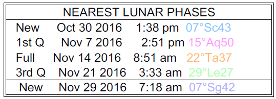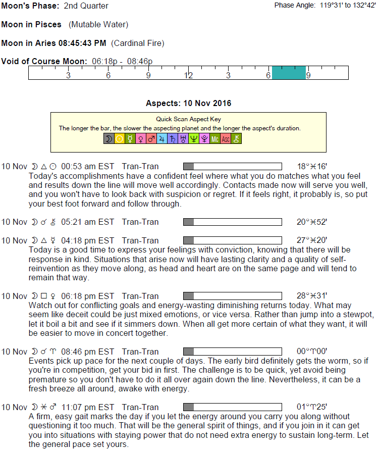 The following aspects (major only) and positions are at noon (EST) on November 10th: