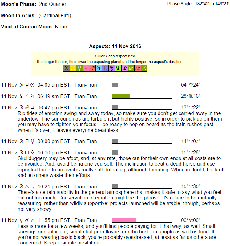 - The Moon is in Aries all day (until Saturday, November 12th, at 9:23 PM).