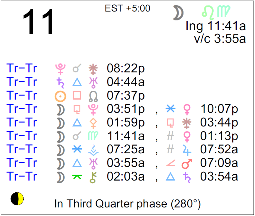 - The Moon is void from 3:55 AM to 11:41 AM.