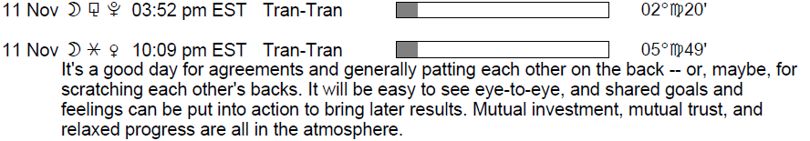 Description: Transiting Moon Sextile Transiting Venus